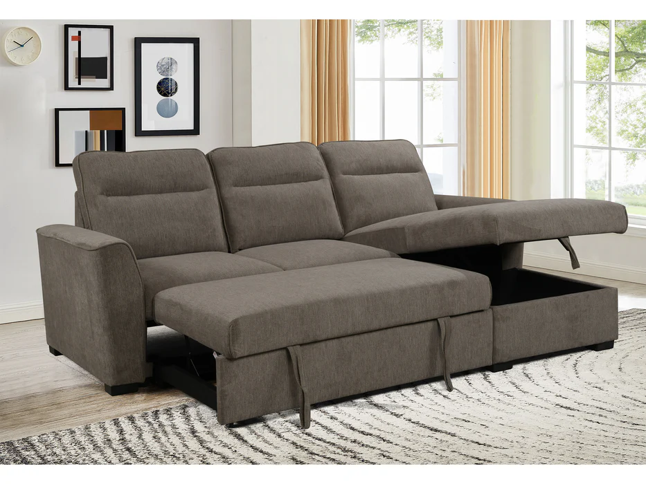 Upholstered in durable, easy-care fabric with plush cushioning throughout, the Belino offers exceptional comfort for both sitting and sleeping. Integrated under-chaise storage provides the ideal place to store blankets, pillows, and everyday essentials, keeping everything neat and within reach.