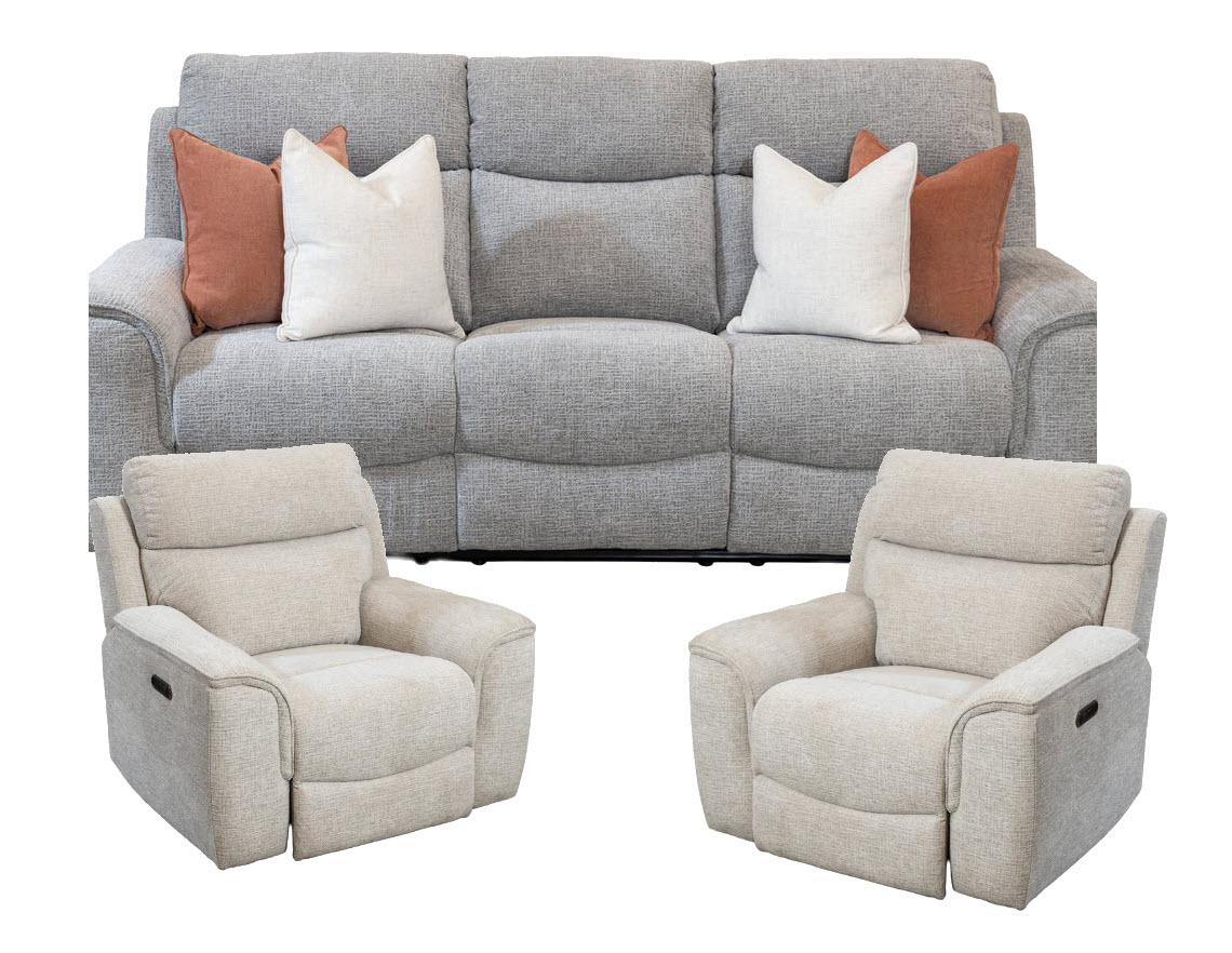 Vargo Fabric Electric 3 seat Lounge plus 2x recliners
